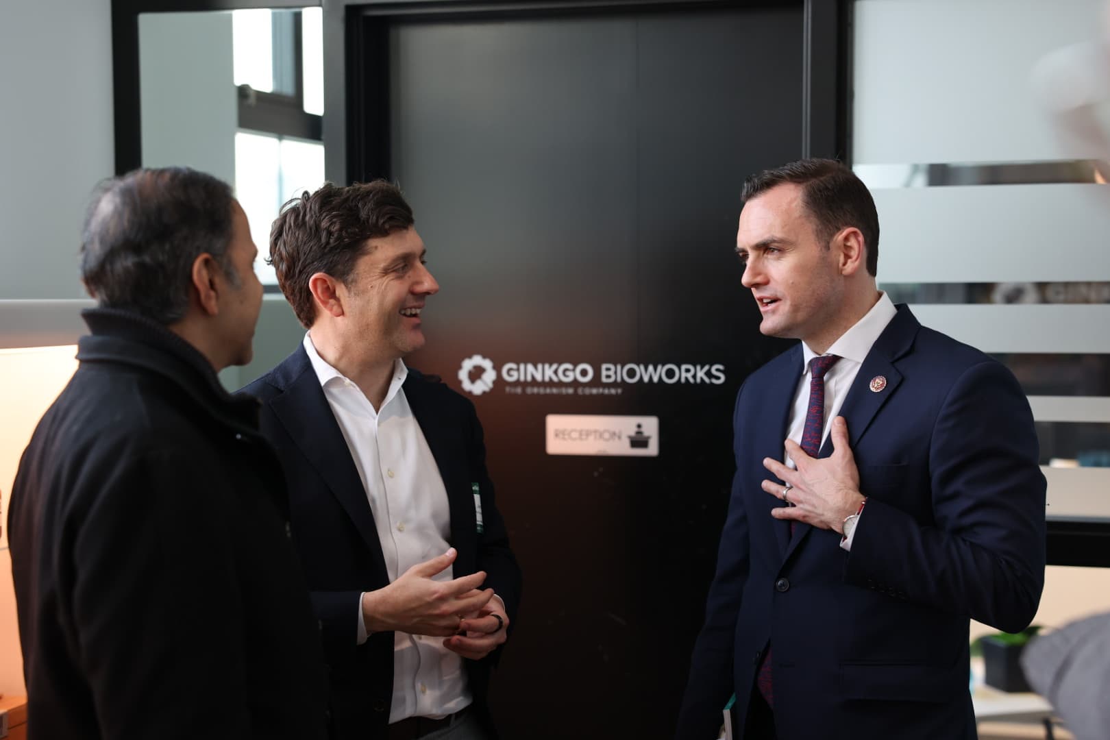 Members of Congress visited Ginkgo’s Boston Seaport headquarters to discuss strategies for bolstering U.S. ability to compete in AI applications for biotechnology, as well as unlocking innovations in pharmaceuticals, agriculture, and across industries